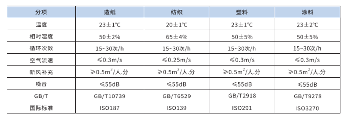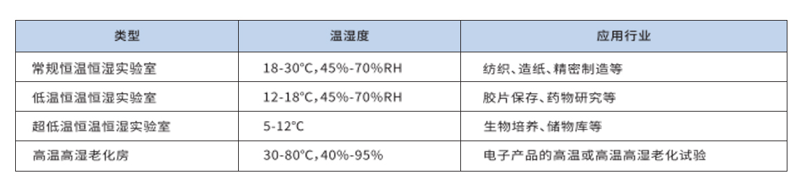 部分行业检测温湿度标准: